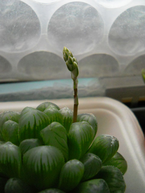 うちにもらわれてきて早4年になる多肉植物のハオルチアさんから、初めての花芽?が伸びだしました。・°・。今後の生長が楽しみです。・°・。♪ 今朝のパワーブレックファーストは、2分の1にしたおフランスパンに2種類のスライスチーズとハム2枚の上に刻みオニオンと輪切りのピクルスを載せて、レタスもたっぷり挟んでいただきました。・°・。しっかり食べておかないと、作業中にお腹が減ってしまっては支障をきたしますので・・・(*´ー`) ! モウコノウマ親子は仮ピンを付けて裏面の塗装に入りました。・°・。塗り途中の様子を眺めていると白馬と黒馬のパレードのようです。・°・。●○