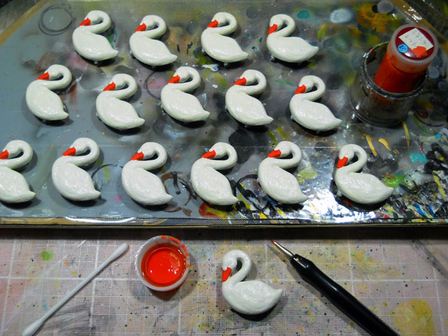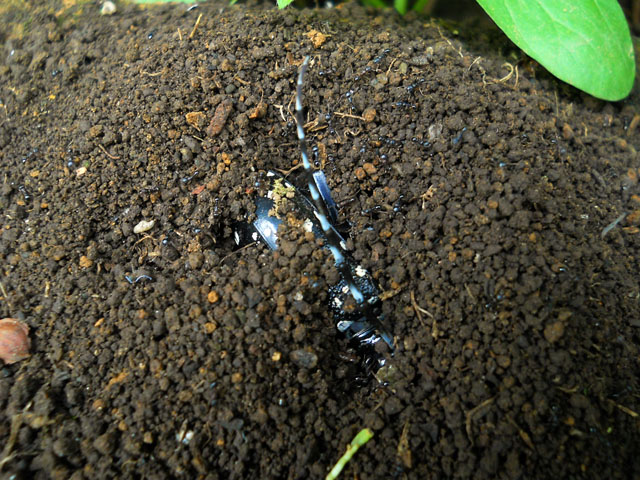 今日も一日厚い雲に覆われて、時折雨が降ったり止んだりを繰り返し、割りと過ごしやすい気温となりました。・°・。グリーンカーテンのプランターとは別に、昨年育てていた品種のアサガオのこぼれ種から芽吹いた苗達も、縁台の下で健気に育ちつつあります。・°・。こちらにもしっかりと肥料や水遣りをしながら、大切に育てて参ります。・°・。◎ 昨日見つけたゴマダラカミキリの亡きがらですが・・・今朝見たらすっかりと細かい土に覆われていてちょっとびっくりいたしました。。。よく観察しますと、とても小さなアリ達がたった一晩で大量の土を運んで隠したことが判明いたしました。・°・。せっかくゲットした獲物を他種や他巣のアリなどライバルに奪われるのを防ぐために、このような戦略を行うことを聞いたことがございましたが、その行動力と素早さにいたく感心いたしました。。。◎ 本日もレリーフ作品の塗装を進めました。写真はコブハクチョウのクチバシの色を施したところですが、この段階で見るとつい「ニルスのふしぎな旅」のガチョウのモルテンを連想してしまいます。・°・。そう言えば作業中、背後で小さな足音を耳にした気がいたしましたが・・・明日の朝一羽減っていたらもしかして。。。。・°・。*