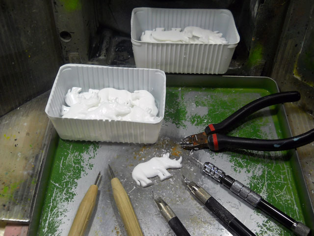 予報では気温が25度まで上がって夏日になるとのことでしたが、あと少し夏日には届かなかったものの、23度を超えて、ちょっと身体を動かすと汗ばむほどになりました。・°・。市営グラウンドのソメイヨシノはすっかり葉桜模様となりましたが、毎年楽しみにしている枝垂れ桜が満開となっておりました。・°・。樹の下から見上げると濃淡のあるやさしげな桃色カーテンの隙間から、明るい青空が垣間見えました。・°・。遠方へ作品を発送した後、レリーフ作品のバリ取りに作業を続けました。・°・。* 陽当たりのよい二階のアトリエでは、Tシャツでも少し暑く感じるくらいの陽気でした。・°・。*