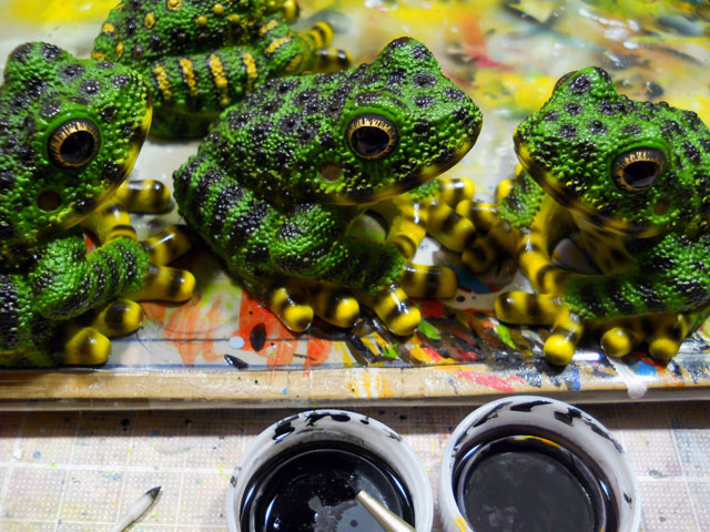 先日メリケン国のお土産に大きな袋にたっぷり詰まったピスタチオをいただきました。大きめの袋にたっぷり入っているので、しばらくはその香ばしいお味を楽しめそうです♪ ナッツ好きにはとてもうれしいおみやげでした(o^-^o)。・°・。◎ アマミイシカワガエルのエアーブラシ部分の塗装は完了して、細部の彩色に入りました。・°・。写真は瞳孔の周りの細かい模様を描き込んでいる様子です。・°・。(@_@) 埼玉南部に位置する実家には古い柿の木があるのですが、今年は珍しく豊作だったそうで、昨夜そのおすそ分けが小包で届きました。・°・。子供の頃よくおやつ代わりにもいでは、かぶりついていたことを想い出しました。。素朴だけれど懐かしくどこかあたたかさを感じる甘さでした。・°・。◎