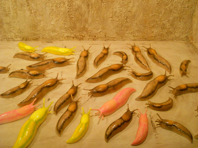 忙しさも落ち着いて、まだまだ残暑が厳しいものの、猛烈な暑さと電力需要のピークが過ぎ、最近またコンスタントにパンを焼いております。水の代わりにトマトジュースを用いたパンは、なぜだかモッチリとしていて、なおかつやわらかくてよく膨らみます◎香りもよいのでサンドするものにも対外よくマッチします♪ さて、昨夜で全ての会期が終了した「第4回・むし展」ですが、今宵はその撤収作業に励みました。虫文字を構成していたチーム・ナメクジは解散の号令とともに各々のホームグラウンドへと還って行かれました* そして次の企画展の設営もお手伝いさせていただきました。と言うのも、今度のニヒル牛2の企画展「闇展」は、皮革作家の宮田蓉子さんが主催だからです! 会期は9/2(金)~16(金)まで、12:00~20:00*木曜定休です。 秋の始まりには是非、想像力満載でオリジナリティあふれる“ミヤタワールド”をご堪能ください(*_*)/~