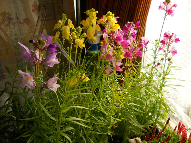 昨夜からの雨は朝方にはやんで空が明るくなって参りました。・°・。しばらく振りのまとまった雨のお陰で、適度な湿度になりました。・°・。* 階段の踊場の窓辺は寒さに弱い植物たちの冬越し場となっておりますが、今年は新たにリナリア・グッピーという仲間が加わりました。・°・。姫金魚草とも言うそうですが、その名にふさわしいかわいいお花がにぎやかに咲き続けております。・°・。*明るい窓辺がさらに華やいだ雰囲気になっております。・°・。* 帯留め作品の「梅とメジロ」の制作を再開しました。・°・。梅の咲く頃には間に合わせられるとよいのですが。。* 午後になって少し熱っぽくなってきましたので、大事をとって早目にイチゴ作戦を取り入れて用心いたしました。・°・。☆