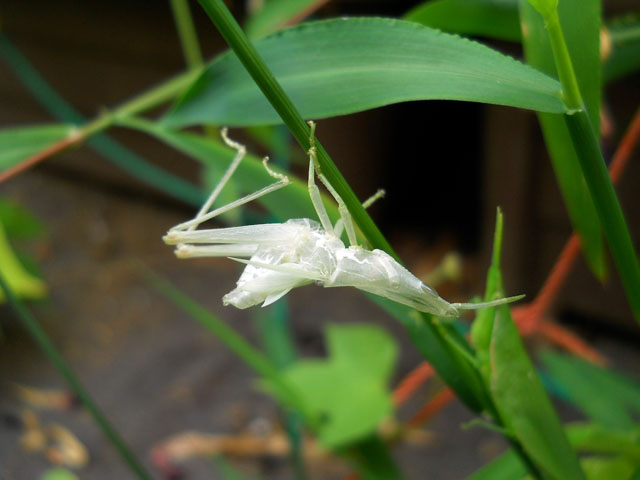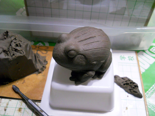 昨夜からまた、大家さんちの猫ちゃん達の代番を引き受けております。・°・。今朝もドアを開けると下駄箱の上や足元から4匹が出迎えてくれました。・°・。連日の記録的な猛暑で猫ちゃんたちも夏バテなのか、食欲も落ちているようで少しやせておりましたが、みんな元気です。・°・。* 拙宅の小庭では朝顔の葉にオンブバッタさんたちの姿が目立つようになりました。・°・。西洋朝顔の旺盛な生長にともなってバッタの繁殖にも拍車がかかっているみたいです。。今朝の水やりの際には、白くてフワフワしたものが草の枝先でゆれておりました・・・よく見るとそれは細い触覚や脚先まできれいに抜け出た、オンブバッタの抜け殻でした。・°・。すぐ脇には一回り大きくなった・・?オンブバッタがじっと留まっておりましたが、もしかしたら抜け殻の主だったのかもしれません。・°・。* 永らく中断しておりました、アフリカウシガエルの立体作品の油土原型を再開いたしました。・°・。立体作品の原型制作はしばらく振りでしたので、感覚を取り戻すまで数時間かかりましたが、左右のバランスが整ってからはだいぶ完成が見えて参りました。・°・。◎