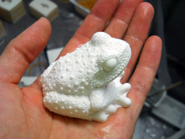 台風通過まで激しい雨風の吹きすさぶ中、いよいよアマミイシカワガエルの型抜き作業に入りました。・°・。一番気掛かりだったのは、体表に施された細かい “ つぶつぶのモールド ” がしっかりと再現されているかどうか・・・でしたが、ファーストショットの型を外した時にその不安は払拭されました。・°・。(≧▽≦) カエルの立体作品の場合は、後ろ半分の型を先に外すようにしているのですが、つぶつぶ感満載のお尻が現れた瞬間。。安堵の溜息が出て・・・それはそれは。。感涙モノでございました(´_`。)。・°・。* 忙しいとはいえ、毎食カレーばかりではいけませんので、栄養面での優等生野菜と言われるブロッコリーもゆでました。・°・。そう言えばなんか似ているなぁ・・たくさんのこのつぼみたち。。(°▽°)