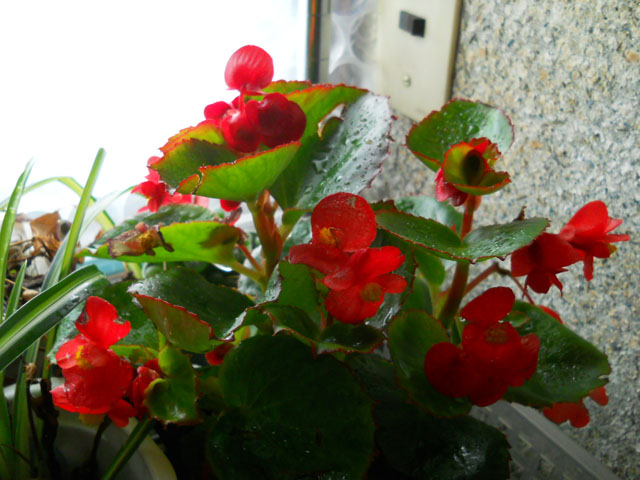 昨夜から未明に掛けて通過した台風8号でしたが、眠りを妨げられることなく予想していたよりも案外静かに去って行きました。・°・。* ツルを巻き始めたばかりのグリーンカーテンの苗達も皆無事でした。。* 先日ホームセンターに買い出しに行った際に、ベゴニア・センパフローレンスの苗ひとつ買って帰りました。花と葉の色にバリエーションがありますが、中でも一番好きな赤花に緑の葉で、葉のふちが赤く彩られているタイプです。・°・。◎ 本日は台風一過の晴天で、猛暑日一歩手前の高温に見舞われました。。我が二階のアトリエでは35℃を軽く越えておりました・・・そんな中でもただひたすらに。。黙々とハシビロコウやオカピたちの細かい模様を描き込むことに専念いたしました。・°・。* アパートの裏庭で連日のように次々に黒く熟しているブラックベリーですが、ジャムにしたものを市販のフレンチアップルパイにトッピングするのも、大変おいしくて気に入っております。やはりブラックベリーの強烈な酸味のお陰で、パイの中のシナモンアップルの甘さがより引き立って、一層おいしく感じられております(o^-^o)♪
