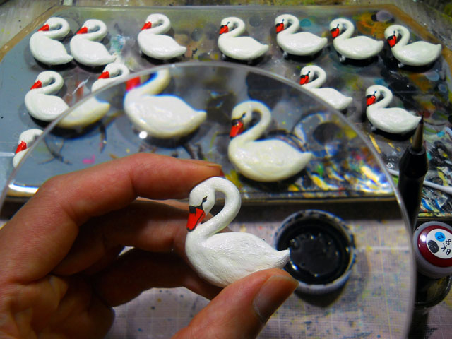 忙しさや雨天続きのため三日間程、ブラックベリーの収穫を出来ずにおりましたが、今朝裏庭に様子を見にゆきますと・・・これまでになくたくさんの熟した黒い実が待ち受けておりました。・°・。用意していたジャムの空き瓶に入り切らない程の豊作です♪ コブハクチョウの塗装も終盤に差し掛かりました。・°・。仕上げのつぶらな瞳を入れたら完成です。・°・。◎ 生け垣のそばをモンシロチョウが飛んでおりました。・°・。葉に留まった姿をよくよく見ますと・・・羽がぼろぼろになっておりました。・°・。きっと天敵に追われたり激しい雷雨や炎天下のもと、数々の苦難を乗り越えて来たのだろうなぁ。。。と感銘を受けました。・°・。*