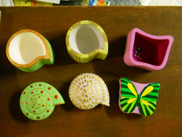 フタ付きの小箱を制作するのも、それを素材にしたワークショップも初めての試みではございましたが、ご参加の皆さまそれぞれ思いおもいのデザインを施されて、同じ素材でもこれ程までに様々な表情を見せてくれるものかと、心底感心させられ通しでございました。。(≧▽≦)!