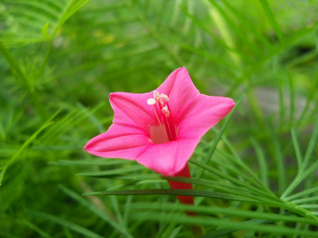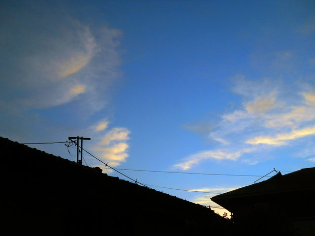 先日の白花のルコウソウに続いて、今朝は濃いピンク色のルコウソウもひとつ咲いておりました。・°・。夕方には次のつぼみもふくらみ始めておりましたので、これからいよいよ星形の花たちが垣根をにぎわせてくれそうで楽しみです。・°・。! 昨夕辺りからどうも風邪をひいてしまったらしく、昨晩は熱と頭痛にうなされました。。今朝にはいったん熱も下がって頭痛もやわらいだものの、時折ぶり返して晩まで続きました・・・先日いただいた桃や、値引きゲットできたプラムなどで天然のビタミンやクエン酸を摂取しながら、次第に快方へと向かいました。・°・。◎ 今日も残暑が厳しい一日でしたが、夕方には少し涼しい風が吹き始めて爽やかな宵空が広がっておりました。・°・。☆