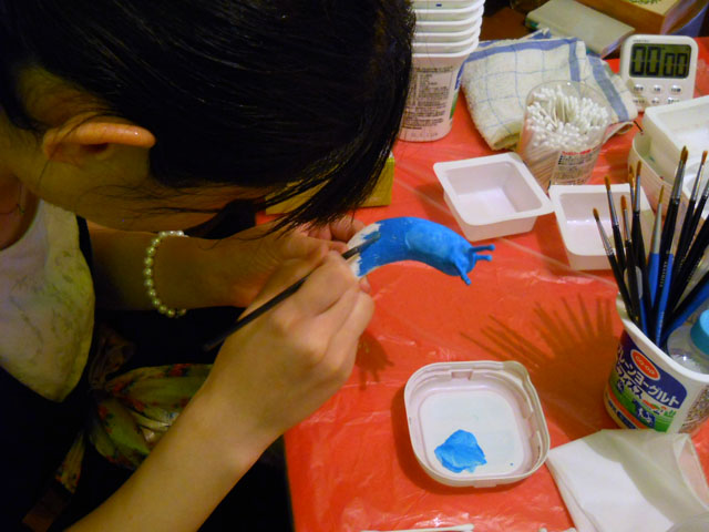 今日は夏らしい青い空に、もこもこと白い雲が湧き上がるお天気でした。気温もぐんぐん上昇しましたが、時折吹く強めの風がいくぶん涼しさを与えてくれました。・°・。 今夏三回目のワークショップを開催しましたが、今回もたくさんのすばらしい作品が仕上がってゆく様を堪能させていただきました。。(*_*)! ちいさなお子さんから、おとなまで制作に取り組む姿勢に違いはないことも、みなさんの真剣な眼差しからあらためて感じました。・°・。☆