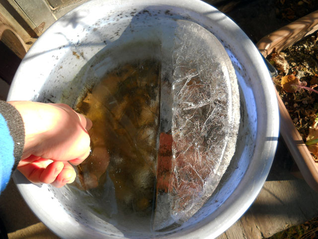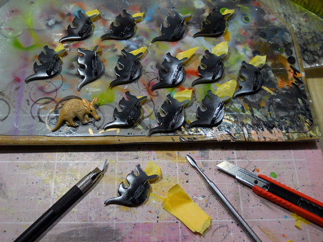 今朝も雨戸を開けに“冷凍庫の扉を開けて”表に出ますと。。「製氷バケツ」にはいつにも益して分厚い氷が張っておりました。・°・。*今回の冬将軍の影響力は半端ないようです。・°・。* ブローチの表側を塗り終えたら、再び裏面の再塗装を施します。表側の色が裏側に回ってしまったのを直すためです。どうぶつの形によっては表側に黒い裏塗装が掛かってしまうので、マスキングテープで養生します。使い捨てが基本のマスキングテープですが、もったいないので粘着力が残っているうちは再使用を心掛けております◎ お客様からご依頼をいただいたホッキョクグマのカスタマイズを施しました。雪の結晶をイメージしたデザインをとのご要望で、胸のところにはラインストーンを、腰の辺りにはラメラメ調ホイル用紙をクラフトパンチでカットした、雪の結晶を配置いたしました。・°・。*