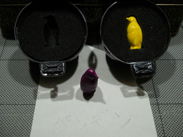 連日の無理が祟ったのか。。不覚にも風邪を引いてしまいました。・°・。目が覚めるとひどい頭痛で寒気も・・・とは言うものの、 とにかく制作を続けなければとどうにかアトリエに入りました。。しばらく作業に励んでおりますと柑橘類のビタミンが効いてきたのか、少しずつ熱も下がって身体も楽になってまいりました。・°・。つくづく日々の健康のありがたさを見に染みて感じました。・°・。* 左端の画像は昨日カエル工房さんの個展で購入したイシガメのメタルキーホルダーです。ちいさいのにとても精妙に造り込まれていて、眺めていると感嘆の思いが込み上げます。・°・。(≧▽≦) 雪融けのグラウンドで懸垂をしていると、電線の間から昇り始めの明るい宵の月がとても美しく見えました。・°・。◯ 先日知人が教えてくれた動物の形をしたクレヨンをいただきました。・°・。クレヨンとして使うにはなんだかもったいないと思えるほどよく出来ておりました。・°・。さっそく試し描きしてみたのですが、実用面ではちょっと。。な感じでした・・・(笑) クチバシも少し減ってしまってかわいそうなので。。やはりこのまま飾っておこうと思いました♪