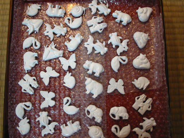 今日と明日の二日間、西荻窪で西荻茶散歩というイベント(詳しくはアトリエ☆イボヤギHPをご参照ください)が開催されますが、その参加店のひとつとして、普段よりお世話になっている豆千代モダンさんでワークショップを催すことになりました。無地のアニマルレリーフに、参加者が好きにペインティングして、ブローチ、帯留め、マグネットのいづれかに加工してお持ち帰りいただくという内容です。お天気もよく(一時、通り雨があったようですが)、冷たいお茶を各店先で楽しみ歩くには絶好の日和でした♪ ワークショップの方もおかげさまでたくさんのお客様にご参加いただきました。みなさん本当にすばらしい発想とセンスで、まさにオリジナルなアクセサリーに仕上げてゆかれました。。◎