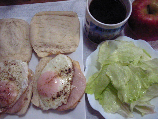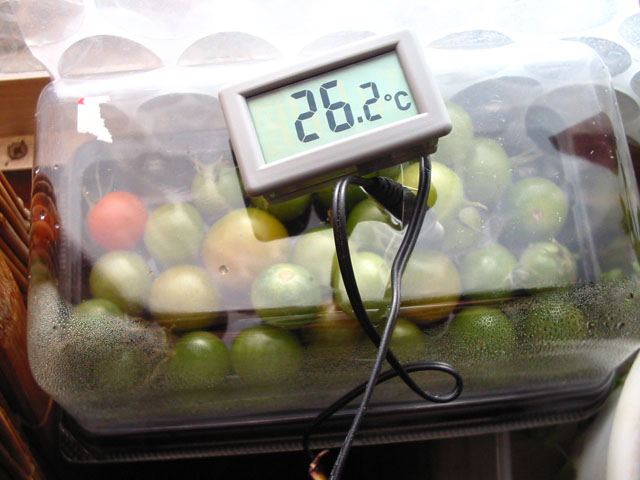 ミニトマトの追熟作戦は今も続いておりまして、二階の窓辺のよく日のあたる場所でまだ堅く青い実たちが熟す日を待っております。だいぶ気温が下がって参りましたので、ロールケーキの空きケースに入れてみました。試しに温度計を差し込んでみたところ、外気が5℃前後なのに夏日の温度を示しておりました・・・!おもわず私もトマトになりたい...とは思いませんでしたが(*_*)これで熟すのが早まるといいなぁと思うのでした♪ 目玉焼きの半熟加減はこの頃上手になりました◎先日安くゲットしたレタスがまだまだあるので、たっぷりと挟んでいただきました。同じアパートの方から、夏にお分けしたアサガオのお礼にと、カボスとミカンをいただきました。かんきつフリークのわたくしですが、カボスはあまり食した経験がございませんでしたので、いっそうのことうれしくいただきました♪カボスは絞って何かに掛けたりするとよいですよ、とお手紙が添えられておりました◎