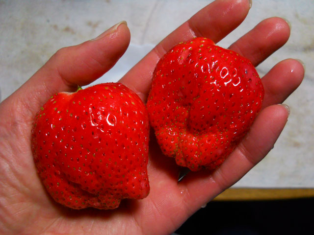大好きな そら豆ですが、これまで冷凍モノしか味わったことがございませんでした。。今回初めて鞘入りのを半値ゲットいたしまして、野菜の本に書いてある通り「さやから出したら急速に鮮度が落ちるのですばやくゆでること!」を気合できちんと守って2分間ゆでました。・°・。軽く塩を振ってホクホク状態のをおいしくいただきました♪ 帯留めとブローチのヤスリ掛けがようやう完了し、洗浄いたしました。・°・。水気を切るためにバットにあけますと、洗っている内にお互いがはまり込んでしまったカバとカエルのコンビが2組も出来上がっておりました(^-'*) 結構がっちりとはまっておりまして。。外すのに知恵リング並みに手間取ってしまいました。・°・。 最近割りと目にするイチゴの品種の やよいひめ ですが、今回ゲットしたのは特に大きなサイズでした。・°・。その割りにちゃんと味がしまっていておいしかったです。・°・。♪