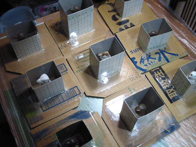 ペンギン18種セット・リメイク版の原型があがり、型取りのためのシリコーン注型に入りました。液状のシリコーン樹脂を、原型を囲った型枠に流し込むのですが、周囲を固定する際に“液漏れ”を起こさないよう細心の注意を払いつつ作業を進めます。今回の注型では事故なく無事に完了いたしました◎ 「個室」に納めたペンギンたちの姿がシリコーンに埋まって見えなくなると、「どうか気泡が付きません様に…」と祈りつつ見届けます・・・。(*気泡が発生すると、その部分の型が空洞になってしまう為) サンマを塩焼きにして、庭で摘んだ青紫蘇の実を添えていただきました。フライパンで焼いているので、流れ出た脂はお皿に移し、醤油と混ぜて「たれ」のようにしていただいております◎