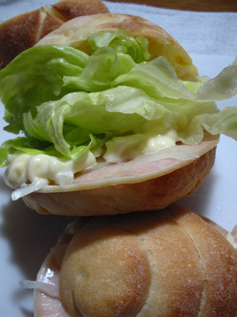 レタスが安かったので、先日お差し入れにいただいたおいしいバンズにハムとスライスオニオン、そしてたっぷりのレタスをはさんでいただきました◎顎が外れる勢いのボリュームに幸せを感じた朝食でした* 今夜の陶芸教室で、古生物中鉢のy焼き上がりを受け取りました。白い方がラスター釉で、緑のがマリン釉です。先週の個展では小鉢を出品いたしましたが、おかげさまでご好評をいただけて大変うれしく存じております◎ 次回の作品展では、中鉢から大皿、カップなども古生物シリーズとして発表の予定です* 同じ教室の生徒さんで、手作りパンを手掛けられている方が、焼きたてのをお持ちくださいました♪♪ 一口サイズの「たこ焼きパン」、ベーコンロール、チョコチップメロンパンをお茶とともにいただき、たいへんにおいしかったです(^-'*) おかげさまでその後の作業がはかどりました(^-^)/~