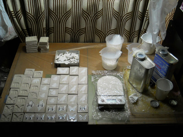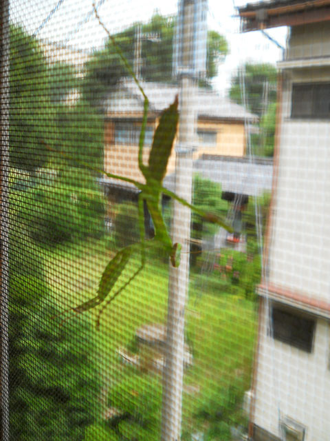 2階にあるアトリエの網戸にカマキリのヤング個体がとまっておりました。・°・。午後からの強い雨風と遠雷の響く中、じっと網戸の上で獲物を待ち構えているようでした。・°・。カメラを近づけますと、こちらの気配に気づいたようで、撮影後の画面チェックをしてみたらしっかりと“カメラ目線”になっておりました(◎▽◎)♪ 帯留め作品をメインにポリウレタン注型を行いました。先週辺りから始まった連日の記録的な猛暑のおかげで、なかなか注型に適した条件にならずにおりましたが、これ以上作業を延期するわけにも行かないので、本日やむを得ず敢行することにいたしました。。2液を混合する熱化学反応のため、あまり気温が高いと硬化時間が早過ぎて作業がうまく運びません・・・もたもたしていると型に注いでいる段階でつららのように固まってしまいます・・・(>_<) それでもなんとか日暮れまでには必要な個数を抜けましたので、猛暑にも耐えて無事に作業を終えることが出来ました。・°・。 今夜もまた夏べジグリーンを色々使って、肉野菜炒めをこさえました。・°・。ゴーヤー、ニラ、獅子唐に豚こま肉を味噌炒めにいたしました。・°・。☆ スタミナ付けて明日もがんばります( ̄ー ̄)/
