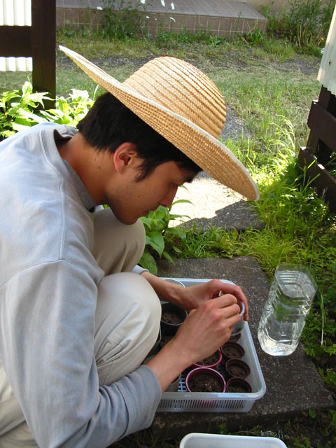 春まきの種をずっと蒔けずにおりましたが、忙しい作業の合間を縫って、本日種まき大作戦を敢行することといたしました。。!さて、なぜ「大作戦」なのか・・・?蒔いた種はミニトマト、アサガオ、オシロイバナの三種類ですが、実はこのアサガオが半端なかったのです。。☆アサガオは一昨年の初夏に、ばあちゃん家から一本の小さな苗をいただいてきたのですが、咲き始めの朝方は鮮やかな青色で、気温が上がり正午近くになると、きれいな紫色に顕著に色変わりするという品種でした。とても気に入ったので、昨年は前年に採取した20粒の種を大事に蒔き、芽が出た10本を育てて、昨夏は実にたくさんの花を楽しむことが出来ました。そして今年ですが、蒔く前に種の数を数えてみました。全部はとても数えていられませんので、まず5グラムを量りとって数を数えて、全体の重さで掛け算しました。おそらく300~500粒くらいかな?と推測しておりましたが、その数実に1,600粒・・・。今年のグリーンカーテンはアサガオで決まりです◎細かい作業で眼と腰が痛くなるほど種を蒔く人に徹したものの、日没までに全部を蒔ききれませんでした。。明日の朝は早起きしてつづきをせねば。。まさにアサガオの早起き効果ですね*蒔き床用に、土をフルイに掛けておりましたら、コガネムシの仲間と思われる幼虫が出てまいりました。ちょうどおやつのカールと同じくらいのおいしそうなサイズでした@(食べておりませんけど)