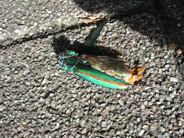まだまだ厳しい残暑が続いているとはいえ、朝晩などには、少しずつ秋の気配を感じるようになりましたね。市民運動場の周囲の雑木林でたくさん見かけた、セミの抜け殻も少なくなりました。先に羽化した抜け殻は、きっと地元の子供たちのコレクションに加わったことでしょう*ヒカゲチョウ?(調べてみたけどよく分かりませんでした…)がほとんど涸れている樹液レストランで、懸命に吸い上げようとしている姿に、勝手に晩夏の寂しさを覚えました。たぶん当人(蝶)はそんなこと思うはずもありませんが。同じ樹の下にはまだ青いドングリがいくつか地面に転がっておりました。タマムシの死骸をたまに見かけることはあるのですが、いまだ生きたタマムシを自然の中で観察したり、捕まえた経験がありません。生きて動いている姿はきっともっと美しく見えるに違いないと思うのですが*