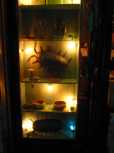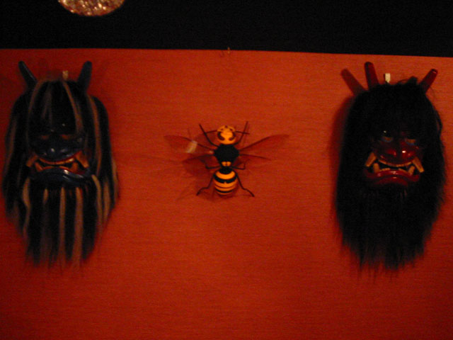 「むし展」も後半に入りましたが、遅れ馳せながらダンゴムシの丸くなったタイプの作品を追加で出品いたしました...。ニヒル牛は夜がきれいです。店頭のショーウィンドウも、店内もナツメ球のほのかな明かりがたくさん集まって、なかなかステキな光景です☆ ダンゴムシたちは知人からいただいた菓子折りの空き箱がサイズ的にちょうどよかったので、活用してみました◎ なんだかちょっとおいしそうです…♪ THE"ロック"食堂さんにもオオスズメバチの追加展示に参りました。大きいサイズの蜂は、秋田名物「なまはげ」の狭間で妙にはまっている気がいたしました...。
