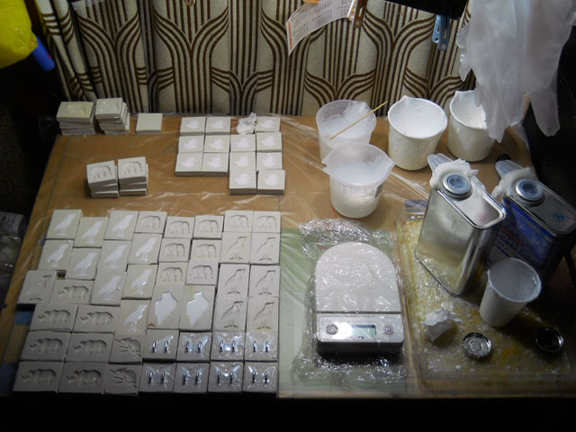 帯留め作品を中心にポリウレタン注型を行いました。天候がよく湿度も低めでしたので快調に作業が運びました。・°・。カラスアゲハたちが早く羽ばたけるようにと。。制作に専念しております。・°・。* セロリを安値ゲットできたので、久しぶりに自家製ミートソースをこさえました。・°・。たっぷりセロリと玉ねぎを細かく刻んで挽肉とよく炒めてから、トマトジュースで煮込みました。・°・。アルデンテにゆであげたスパゲッティにたんまり載せていただきました。・°・。◎