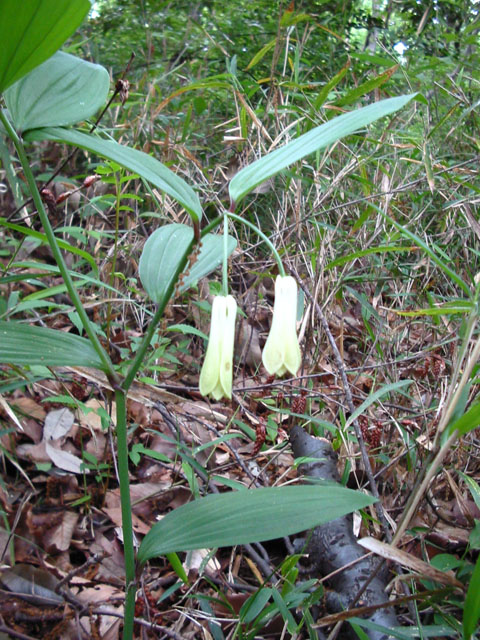 今朝階段を上がって踊り場の窓際に目をやると、見慣れない小さな紫色の花が目に付きました。それは何とか冬越しに耐えた、ツユクサの仲間のゼブリナの花でした。昨年の夏の間旺盛に育っていたゼブリナでしたが、屋外の自作温室では厳しい寒さに耐え切れず、枯死してしまいました。大株はやられたものの、何本かをガラス瓶に挿し芽にしておいたものが、いくらかでも暖かい2階の窓辺でどうにか生き延びてくれたのでした*、春になり気温の上昇とともに、少しずつですが元気を取り戻していたところでしたので、今朝の思いがけない開花はいっそう勇気付けられてうれしかったです・・・◎ 近所の遊歩道の並木も新芽がだいぶ伸びて、さながら緑のトンネルのようで通るのが気持ちいいです♪ 図書館の裏山の雑木林で、アマドコロ?と思われる花を見つけました。