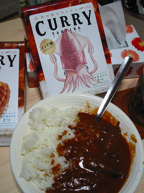 友人宅近くの大きな神社で、すてきな?禁止札を見かけました。こんな風に咎められると、なんだか素直に従ったほうがよさそうだな…と感じました* 境内にあった石のベンチにも興味をそそられました。最初は「ネコちゃんかな?」と近くでよく見たら、なんとそれはハイエナの赤ちゃんでした…(たぶん・・・)。 そんなステキな久しぶりのホリデェイの散策を楽しんだ後は、新鮮な食材が豊富な格安スーパーで夕飯の食材を買い求めて帰りました。スルメイカが丸ごと二杯入っているレトルトカレーの素晴らしすぎるイラストが目に飛び込んで来ました。ちょっとデフォルメされている感じですが、博物画的なタッチがまたいい味を醸し出しておりました。お味の方もなかなか本格的な感じでグッドでした◎