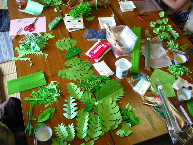 「むし展」の会期前の最後の会合を開きました。今回も前回に引き続き、展示場の「森」の演出のためのディスプレイ素材の制作を行いました。左端の画像は、出展者の一人が手掛けた食虫植物です。今回はキノコに加えて、粘菌の子実体を手掛けた方もおりました。「葉」の方も、様々な形のバリエーションがだいぶ増えて参りました◎ ニヒル牛2に資材を置きに行き、アイスコーヒーとシフォンケーキをオーダーして、一息つきました。。 ギャラリー夢卵で開催中の、「むし展」メンバーでもあるマイヤさんの個展を観に行きました。