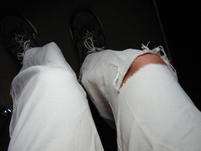 キンバエの仲間?と思われるハエを見つけました。キンバエといえば、「むし展」作家のエーツーの2コさんのハエ作品です。ラフレシア帽を大・小サイズ揃えたわたくしですが、ハエブローチも購入いたしました。ハエなのにかわいくて良心価格です◎ 2コさんは他にも「ハエのべっ甲飴」もこさえました。もちろんモノホンのハエが入っているわけではございませんので、ご安心を…♪ ヘクソカズラの花を間近で観察していると、小さなハチが毛むくじゃらの入り口から潜り込んで姿が見えなくなりました...しばらくすると今度は頭から出て来ました。自分がハチのサイズになったら、一度楽しんでみたいアトラクション?にも見えました♪ 膝栗毛よろしく、長らく履きこんで来たベージュの綿パンがとうとう破けてひざ小僧が顔を出しました。街からまちへとよく歩き酷使してきましたので、今までよく持ってくれたものだと感謝いたしました◎