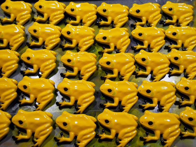 今日は朝からよく晴れて陽射しがまぶしいくらいでした。・°・。おかげで屋根の上の雪もどんどん融けては音を立ててすべり落ちてゆきました。・°・。また、雨だれのように滴の垂れるサウンドも一日を通してにぎやかに響き渡っておりました。・°・。* モウドクフキヤガエルなどのような明るいカラーのモノは、仕上げの塗装でたいへん神経を遣います。。と言いますのも、ほんの僅かな塵でも付着しますととても目立ってしまうので、仕上げ剤の吹付けの際にはとにかくクリーンな環境を保つこと(ホコリを立てないように・・・)に気を遣う必要がございます。・°・。(*_*)