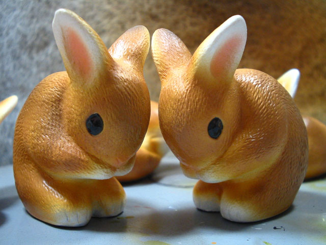 本日は梅雨の中休みのようでしたね。おかげでランドリーがすぐにパリッと乾いてくれて助かりました◎ 今夏の目標だった「アサガオによるグリーンカーテン」の為のエンドウネットを、二階の窓から自宅前の垣根の前に垂らして固定しました。とにかく長いので今回も絡まらないように気を遣いました。。これでアパートの自室の周囲を「コの字型」に取り囲むようにアサガオのプランターを配置完了です!作業の合間あいまでしたのでなかなか進まず、ネットや支柱がないために、絡みつく先のないツルたちにせかされどうしだったのですが、ようやく解消してすっきりいたしました♪きっと一番安堵したのはアサガオたちに違いありませんが・・・。 小松菜の収穫をいたしました。すっかり穴だらけにされていたので、食べられるところは少なかったですが、味噌汁の具と、塩炒めにしていただきました。虫の食べ残しをいただくのも悪くないと思うのでした。。 只今、フェネックといっしょにカイウサギ(飼い兎)のフィギュアも作っております。この仔たちは、うつむき加減で何かをもぐもぐしているしぐさを表現しております++