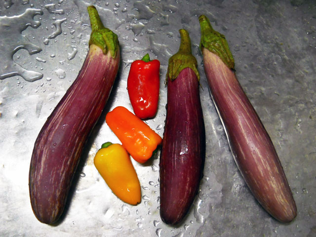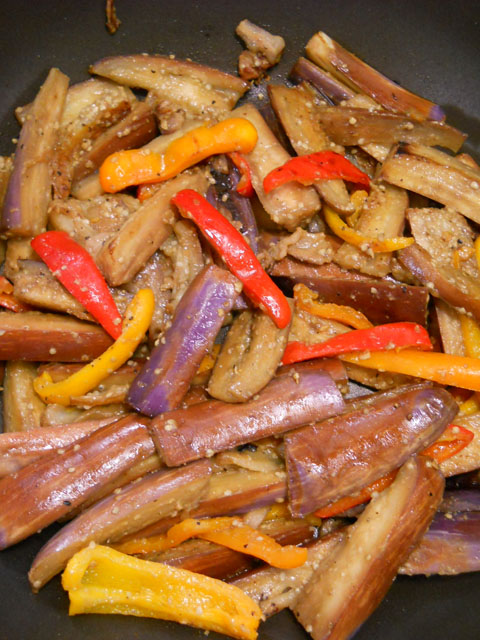 先日いただいたたくさんの野菜の中で、絞り模様の入ったナガナスとカラーピーマンで彩りよく炒めてみました♪ 赤味噌で味付けしましたが、ナスの歯ごたえもあって見た目だけでなくお味の方もよかったです◎
