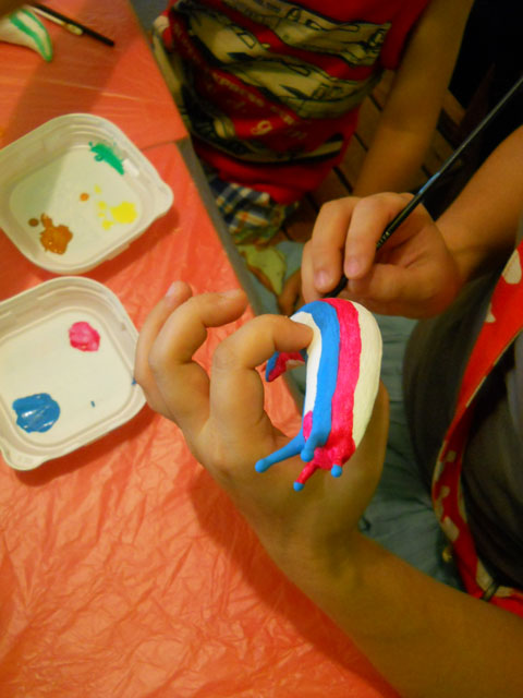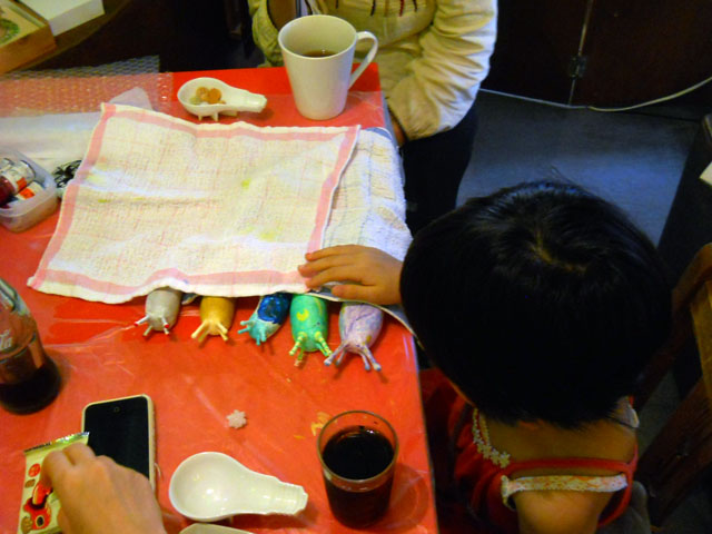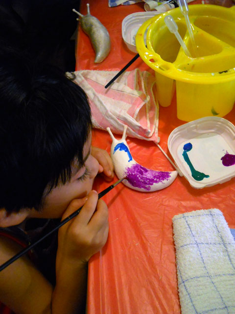 今日は夏らしい青い空に、もこもこと白い雲が湧き上がるお天気でした。気温もぐんぐん上昇しましたが、時折吹く強めの風がいくぶん涼しさを与えてくれました。・°・。 今夏三回目のワークショップを開催しましたが、今回もたくさんのすばらしい作品が仕上がってゆく様を堪能させていただきました。。(*_*)! ちいさなお子さんから、おとなまで制作に取り組む姿勢に違いはないことも、みなさんの真剣な眼差しからあらためて感じました。・°・。☆